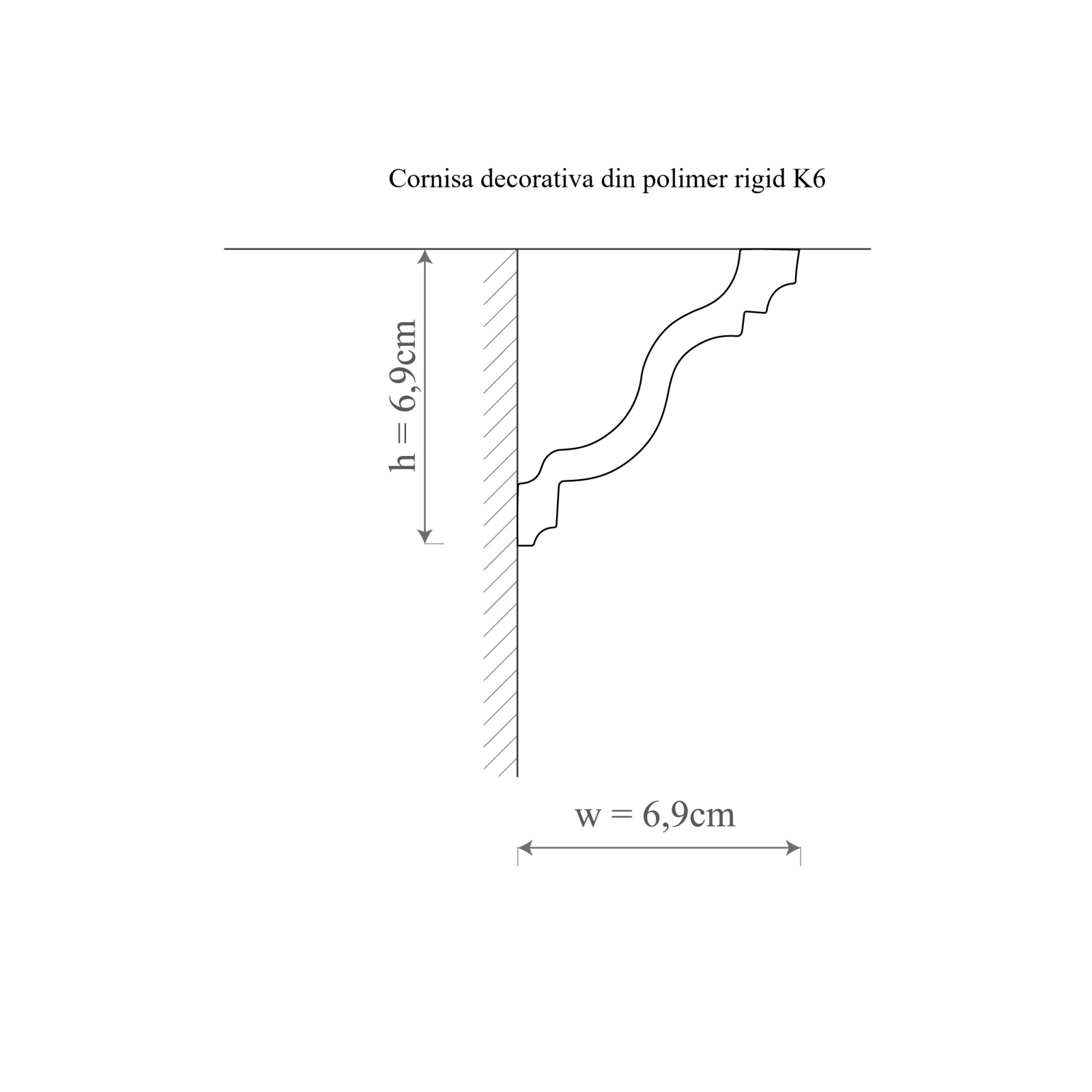 Cornisa decorativa din polimer rigid K6 - 6.9x6.9x200 cm