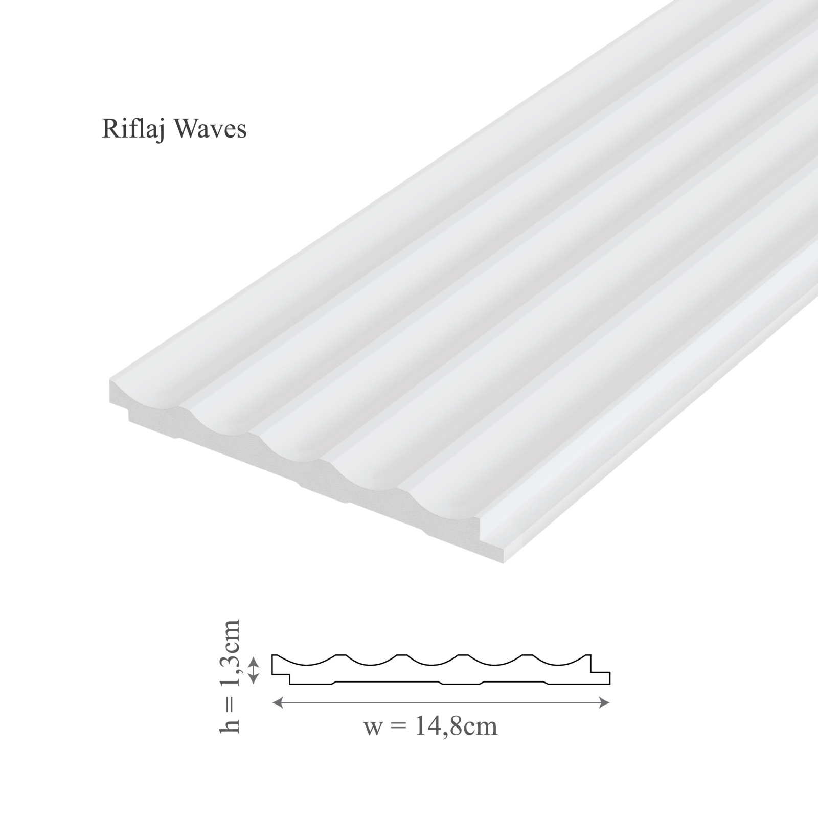 Panou riflaj decorativ 3D din polimer rigid, model Waves - 14.8x1.3x250 cm